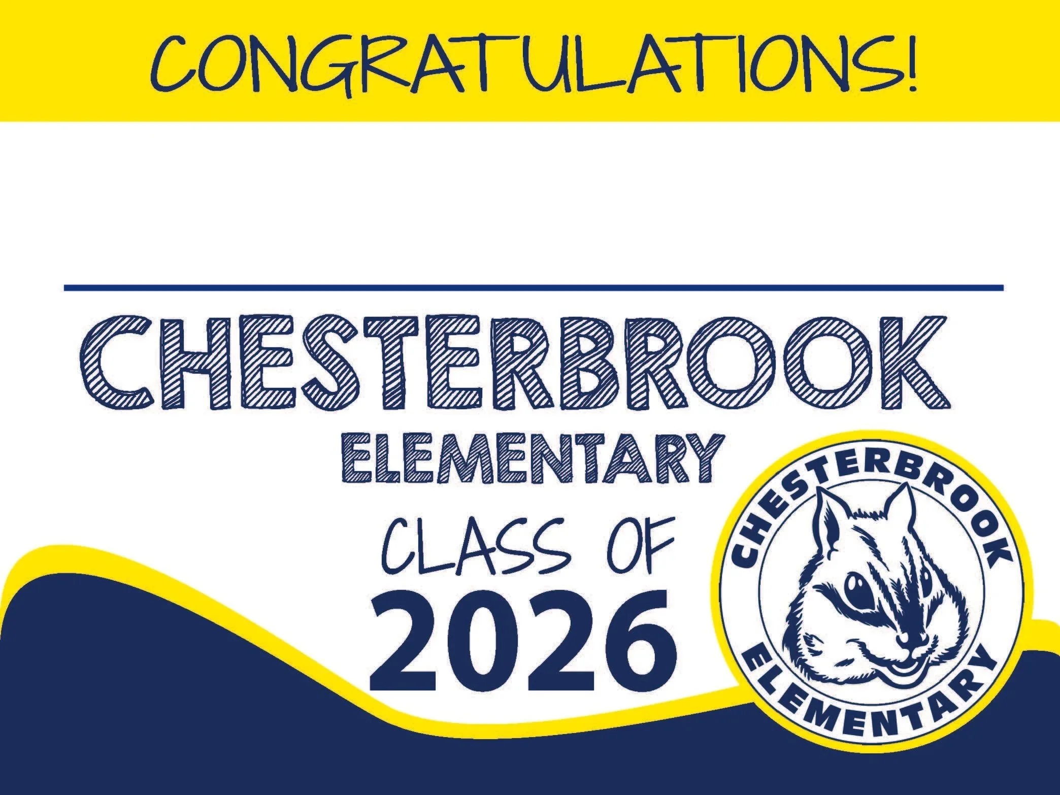 Celebrate your 6th grade Chesterbrook graduate with a personalized yard sign. Show off their accomplishments on the Chesterbrook lawn and then on your own lawn! Purchased signs will be delivered to the school in late May and displayed for a week in the front garden of Chesterbrook. After that time, they will be available for pickup to display on your own lawn. You may display a blank name, your child's name, or initials to personalize how you prefer. Yard signs are $10 each.