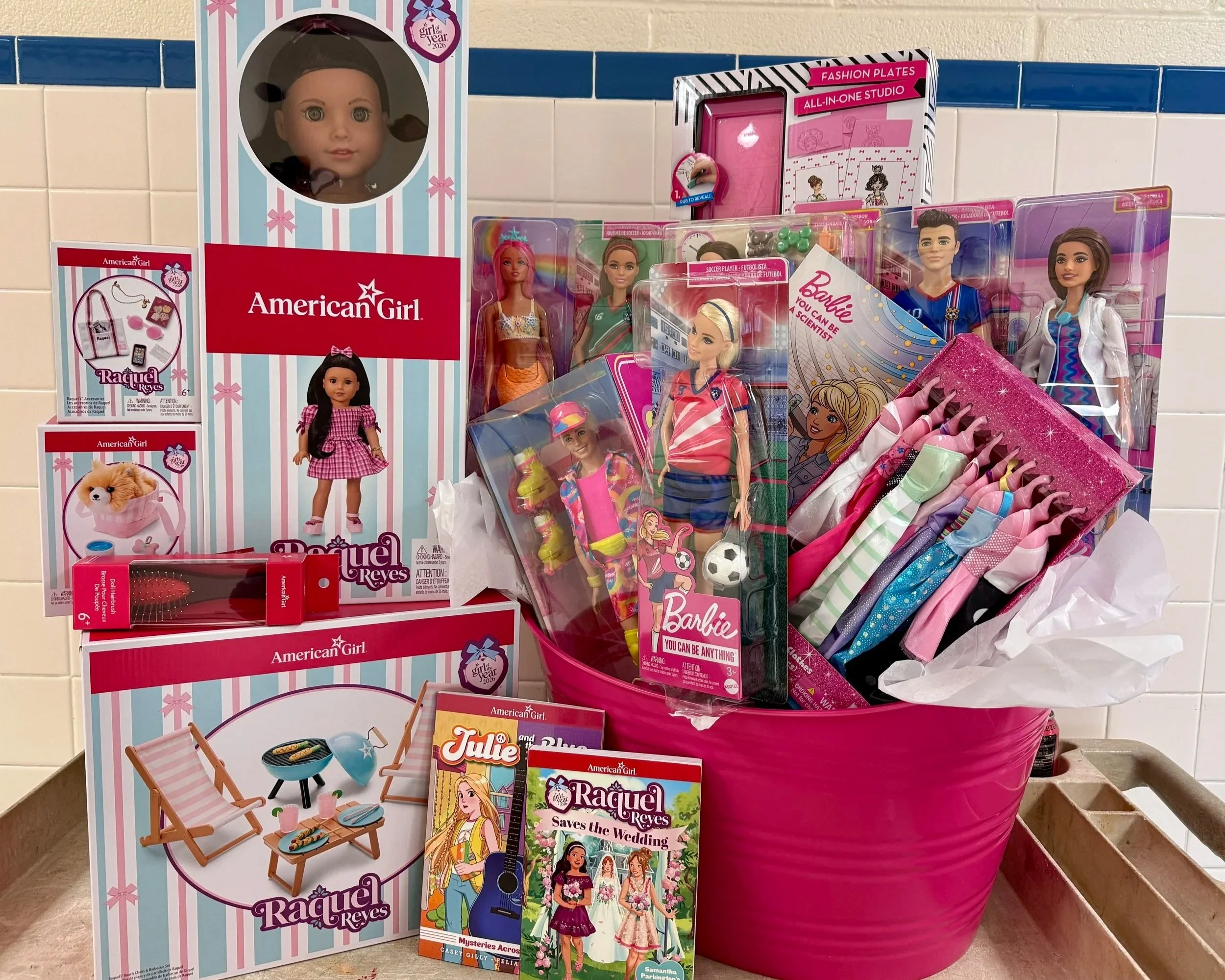 The ultimate dream for every doll lover, this fabulous basket is bursting with American Girl and Barbie! At the heart of this dreamy collection is the 2026 American Girl Doll of the Year, Raquel Reyes, along with her adorable pup Luzita - ready for endless adventures! Set the scene with beach chairs and a BBQ set for sunny-day fun, then dive into her inspiring story with her companion book. The glam doesn’t stop there! Step into a world of imagination with multiple Barbie and Ken dolls, and create runway-ready looks with a fashion design kit. And for a sweet treat after a day of fun? Enjoy a delicious break with a Crumbl Cookies gift card - because every doll-loving day deserves a little indulgence!
