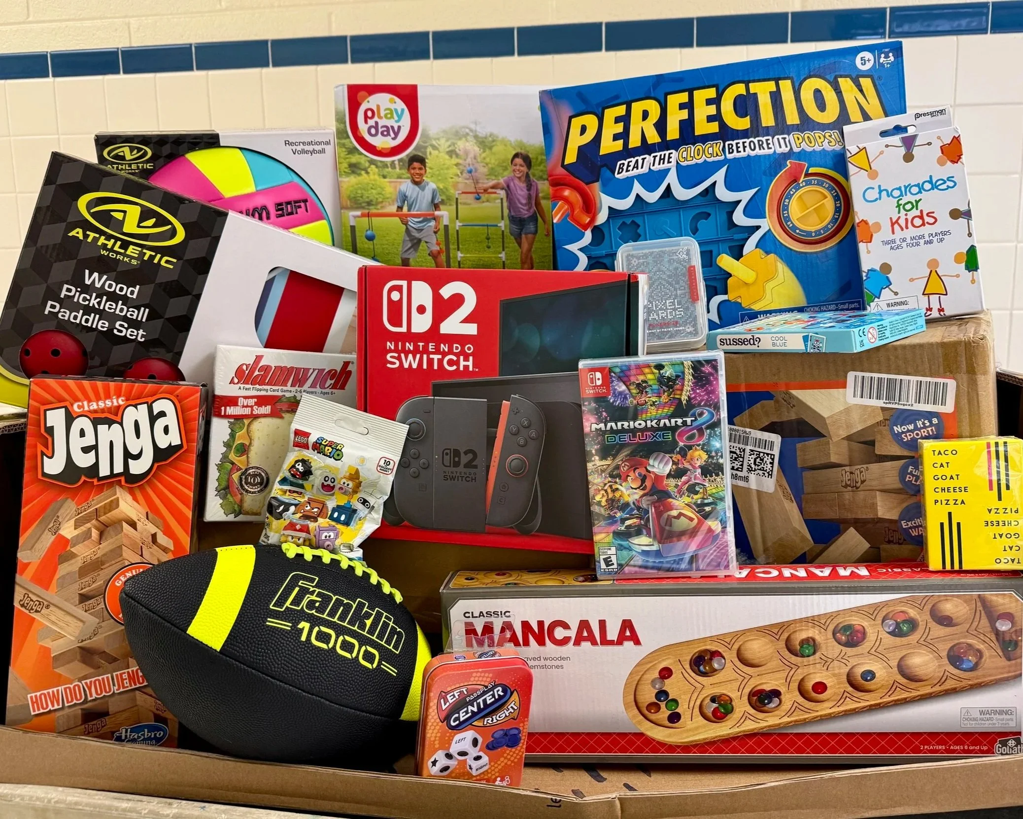 Whether you’re a casual player or a fierce competitor, this basket has something for everyone! Level up the fun with this action-packed raffle basket! Level up the excitement with a Nintendo Switch 2 and race to victory with the Mario Kart Deluxe game - perfect for fast-paced fun and friendly rivalries. Bring the competition off-screen with a mix of board games and card games that keep the laughs going, then take it outside with crowd-favorite yard games like giant Jenga or Ladder Toss. Game On!